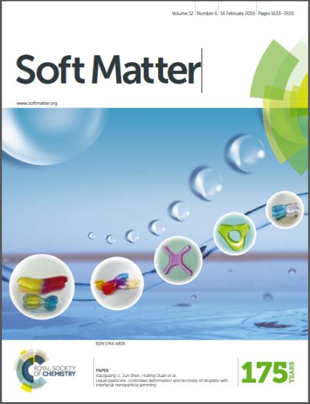 图1. 文章被选作2016年2月14日出版的《Soft Matter》杂志封面。