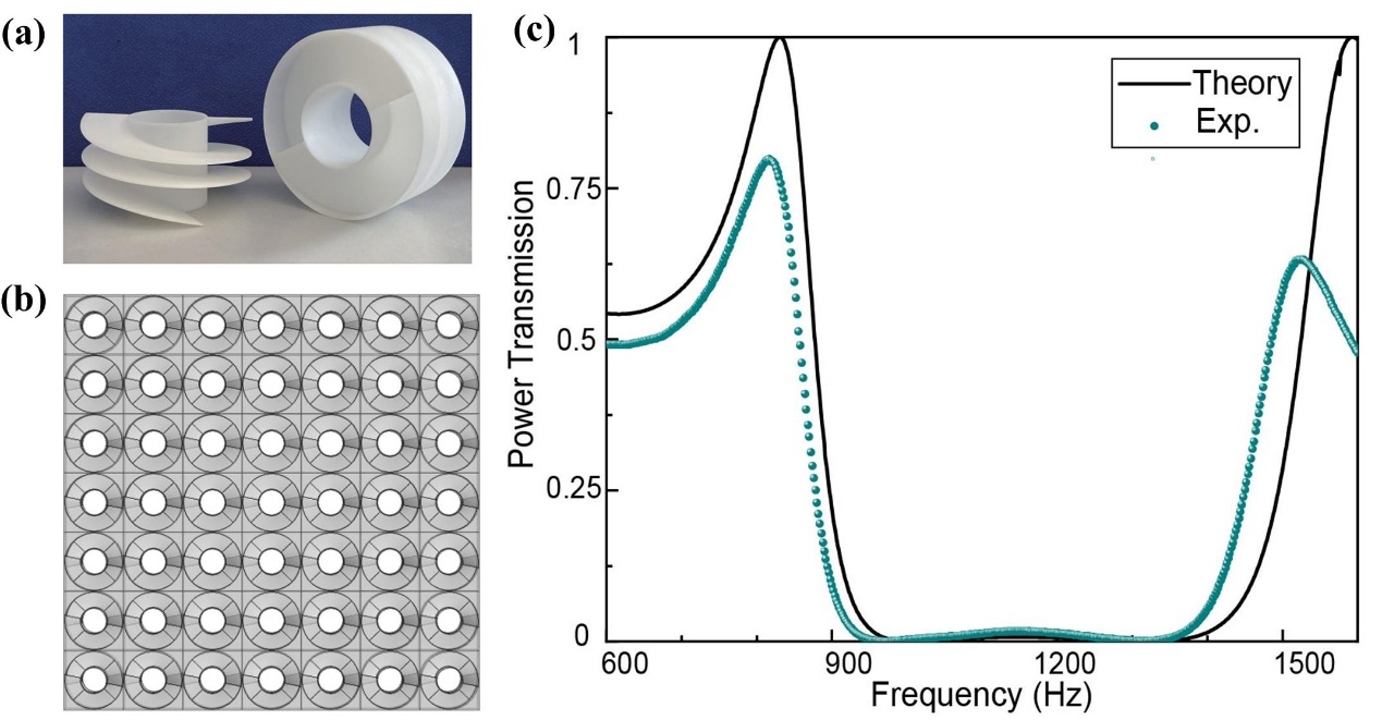 依托于“建筑-声学一流学科共建平台”,我校漫蛙漫画 声学研究所的李勇研究员课题组与毛东兴教授课题组合作,在建筑声学的通风隔声窗领域取得重要进展。研究提出了一种以号筒状中空螺旋隔声单元为基础而构建的类镂空雕花薄板状结构,突破了传统隔声窗的高气流压力损失及现有超构隔声窗的窄带隔声等局限,实现了兼具高效通风和宽带隔声的通风隔声窗设计。相关研究成果于2020年4月10日以“Broadband Acoustic Ventilation Barriers”为题发表在国际物理学期刊Physical Review Applied第13卷上 [Phys. Rev. Applied 13, 044028 (2019)]。硕士研究生孙曼为第一作者,毛东兴教授、王旭副教授和李勇研究员为论文共同通讯作者。