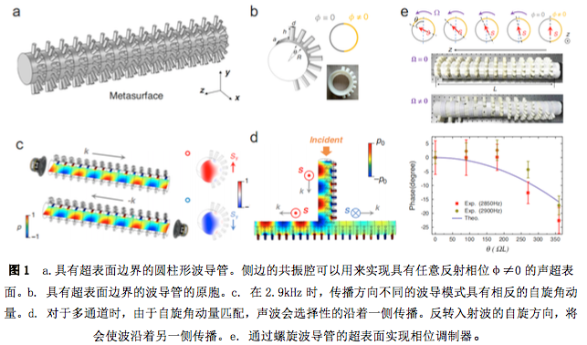 Metasurface Waveguides”( 声自旋输运在超表面波导管里的实现)的论文。该项工作持续了三年努力,同时在理论和实验上展示了一种新的超表面波导,实现了声的自旋角动量,及其自旋传输的各种新奇调控,比如转角散射的抑制、自旋选择的声路由器、旋转声自旋和相位调制器等。