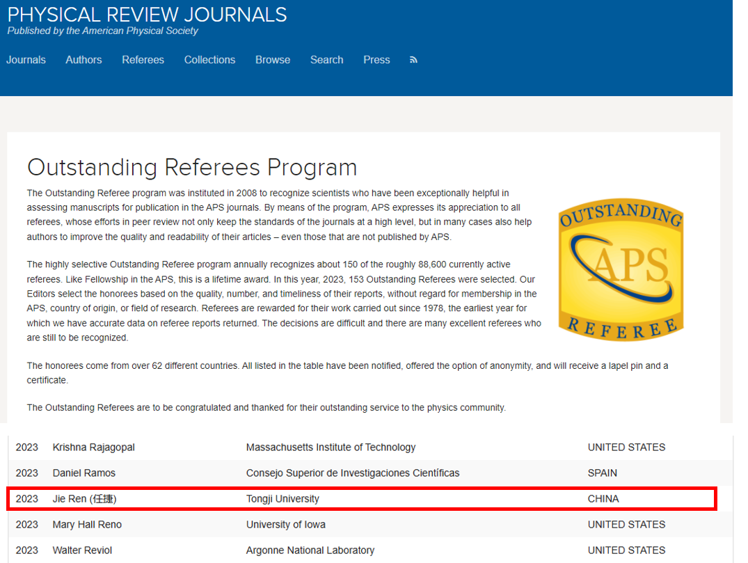 美国物理学会出版的《现代物理评论》(Reviews of Modern Physics)《物理评论快报》(Physical Review Letters)等十余种“物理评论”(Physical Review)系列期刊已成为世界物理学领域最具学术影响力和品牌影响力的期刊集群。2008年,美国物理学会设立杰出评审人奖(APS Outstanding Referee),每年精心遴选约150人,旨在表彰其在评阅稿件数量、质量和意见反馈及时性等方面的贡献,以及在评审过程中所秉持的专业性、公正性和建设性。