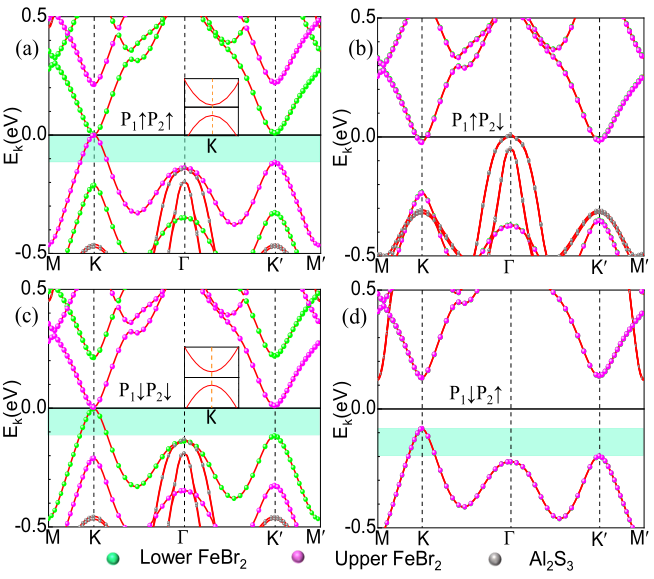 图2、Al₂S₃/双层2H-FeBr₂/Al₂S₃多铁范德华异质结的层投影能带图