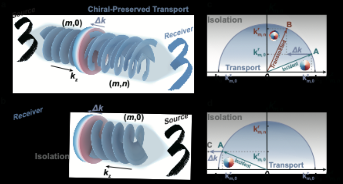 声学研究所李勇、王旭教授团队在手性保护的极端非对称声信息传输方面取得进展。研究团队提出了一种手性保护与拓扑荷守恒的极端非对称声信息传输方法,并在强噪声环境下展现出鲁棒的传输能力。该方法利用径向模态自由度,克服了传统角向调制方式导致的手性破坏与通道串扰问题,相关成果以“Chirality-Protected Extreme Asymmetric Acoustic Information Transport with Noise Immunity”为题,发表于《自然·通讯》(Nature Communications)。