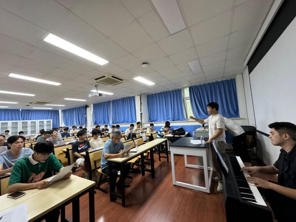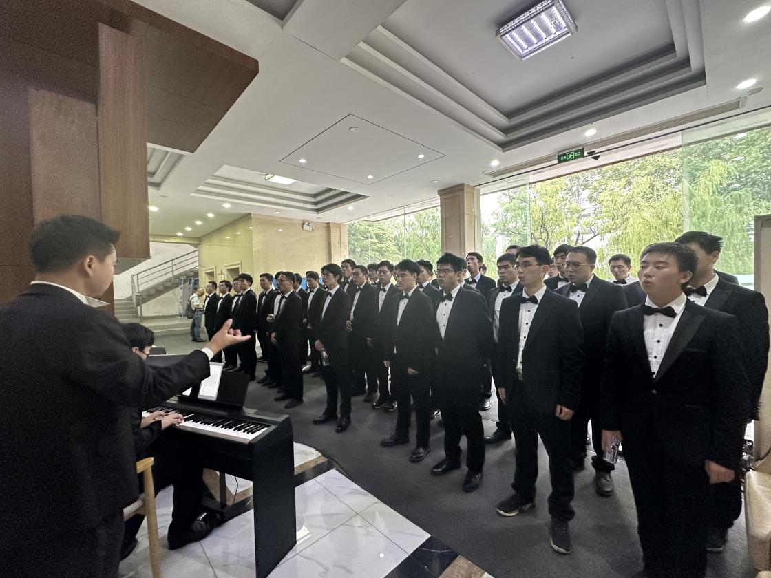 本次展演的筹备工作历时一个多月,我们最终取得的好成绩离不开老师同学们的辛勤付出。在合唱指挥黄湘、钢琴伴奏张帆的带领下,合唱团师生排练数次,我们的磨合越来越默契。由最初的懵懵懂懂到最后的驾轻就熟,我们每一个人都成长了许多。在此特别感谢指挥黄湘老师耐心又专业的指导,张帆同学精准又优美的演奏,没有你们,就没有我们最后的优异表现。