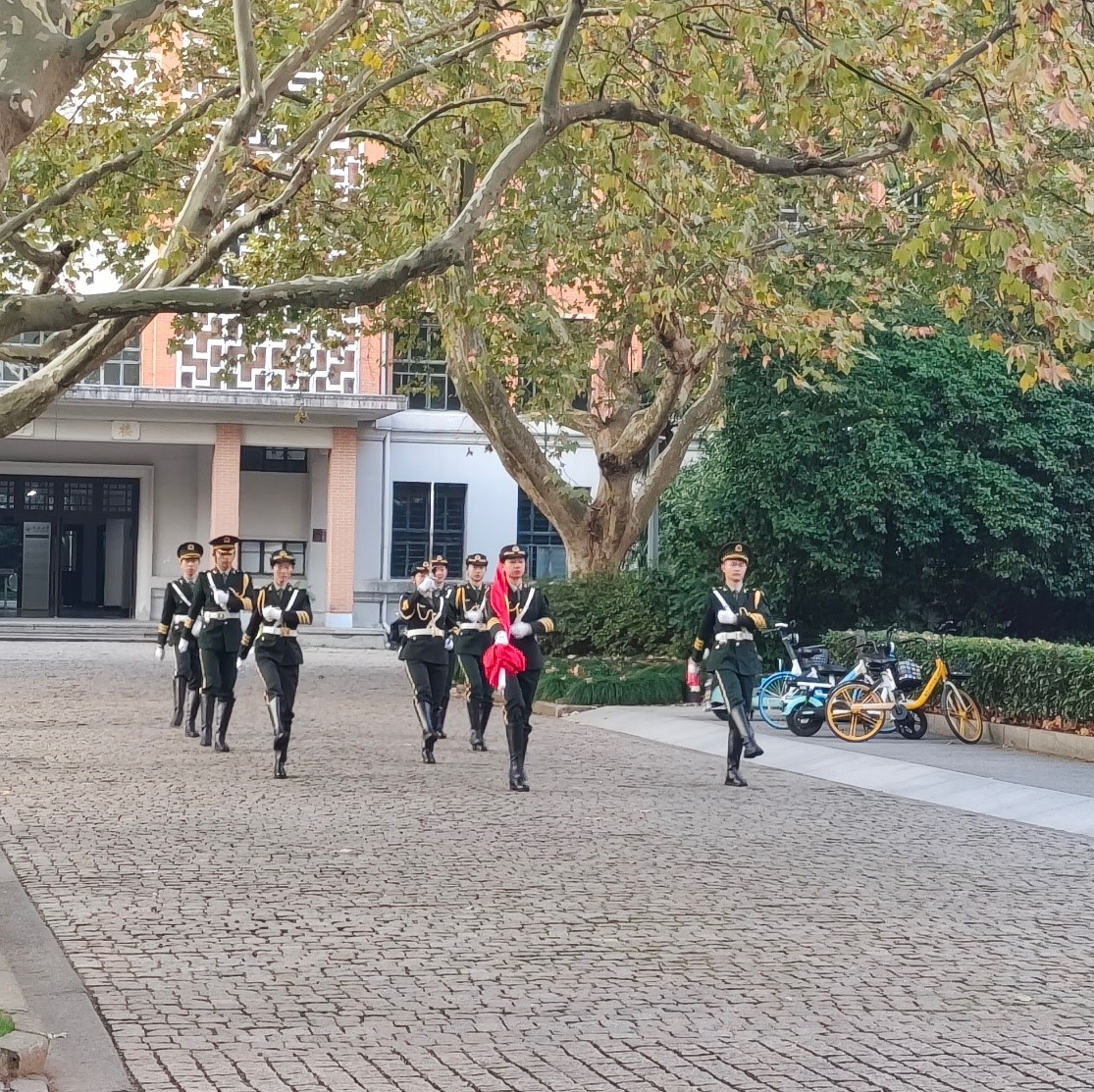 清晨7点整,在物理学院王筱涵同学的主持下,升国旗仪式正式开始。国旗护卫队的同学们迈着整齐划一、铿锵有力的步伐,护送着五星红旗正步走向旗杆。全体师生面向国旗肃立致礼,随着激昂的《义勇军进行曲》响起,师生们注视着五星红旗冉冉升起,在熠熠晨光中迎风飘扬。