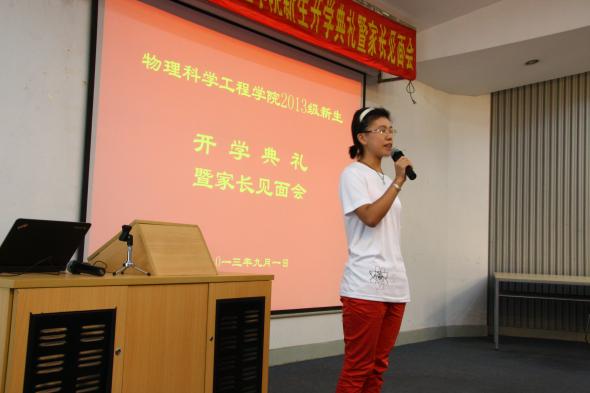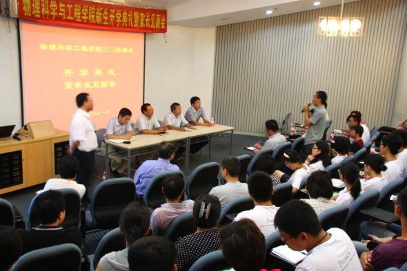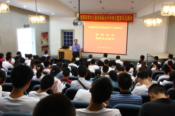 2013年9月1号物理学院在瑞安楼2楼报告厅召开了本科新生开学典礼暨家长见面会。