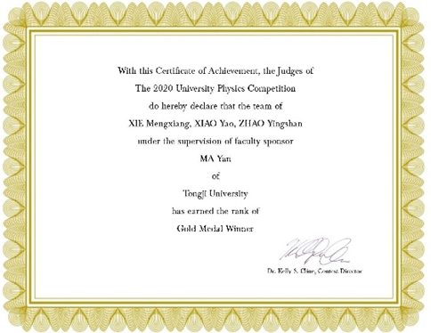 近日,2020年国际大学生物理竞赛(The 2020 University Physics Competition)成绩揭晓,我校学生取得丰硕成果,共获得金奖2项、银奖8项、铜奖8项及完成奖10项。这也是同济学子自2015年参赛以来,首次获得金奖。