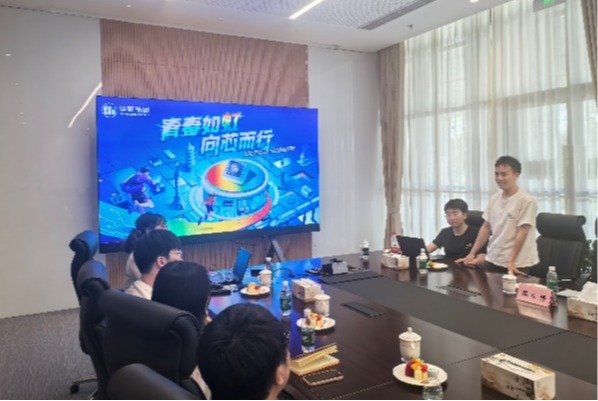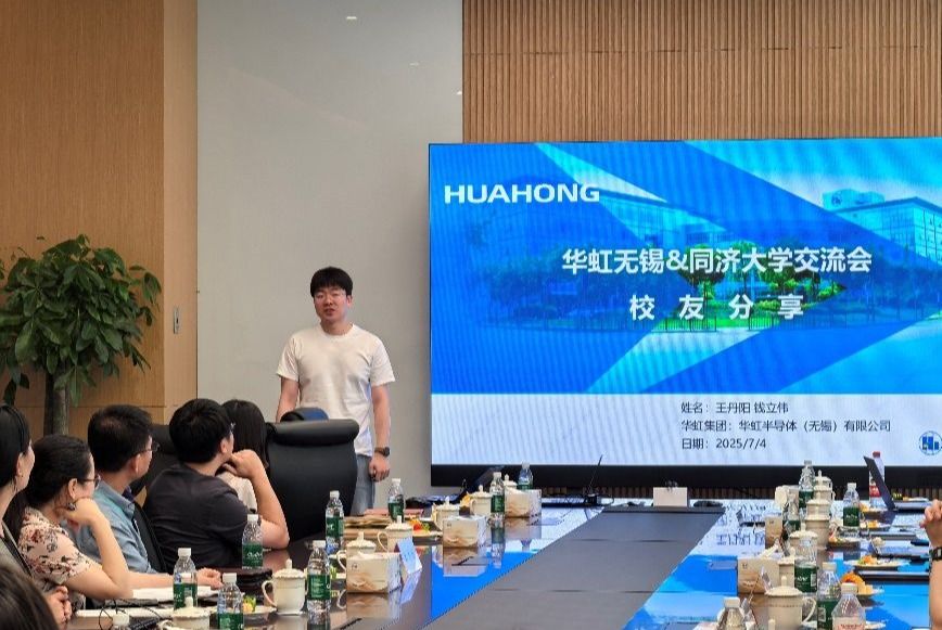 参观结束后,师生们来到会议室开展深入交流。会上,李志国副厂首先详细解读了半导体产业的发展现状、未来趋势等关键内容。接着,学院 2019 届校友冯秦旭和钱立伟、王丹阳几位在华虹工作的同济校友也结合自身岗位经历,分享了精彩的职场成长故事,从技术研发、生产管理等不同角度为学弟学妹提供了切实可行的职业发展指导。最后,华虹的招聘主任夏昭君女士详细解读了华虹的人才培养计划与招聘政策,并现场解答了师生关于职业发展的疑问。互动环节,同学们踊跃提问,现场气氛热烈而融洽。