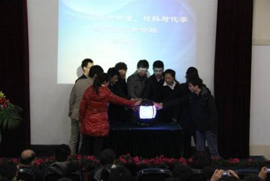 物理系党总支书记周斌教授主持,出席开幕式的领导和嘉宾有:副校长陈以一教授,复旦大学王迅院士,校研究生工作部陆居怡部长,校宣传部孔德懿副部长物理系系主任王占山教授,物理系党委副书记考书健老师,以及物理系部分青年教师。中国著名物理学家,复旦大学应用表面物理国家重点实验室主任王迅院士应邀做了特邀报告。