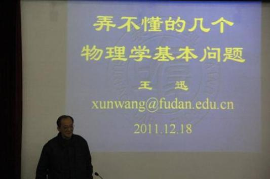 论坛第一项活动,来自复旦大学的中国著名物理学家王迅院士为大家做了题为“弄不懂的几个物理学基本问题”的精彩报告。王迅院士从几个物理学的基本问题入手,用新颖的观点和自己的亲身体会为大家阐述了自己对于研究物理问题的思路和方法。整个报告由浅入深,让大家都受益匪浅。报告完毕,参会人员进行合影和午宴。
