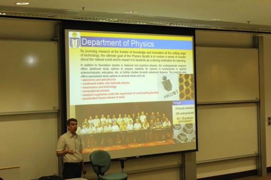 ALTMAN教授给予了热情接待,并介绍了香港科技大学的历史沿革、师资力量和学生培养等概况,以及粒子理论与宇宙学和凝聚态物理的研究工作,同时还风趣幽默的和同学探讨微观粒子在宇宙演化进程中的角色。Yilong