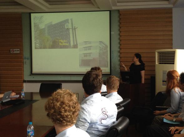 外事办公室的张向荣老师给访问团介绍了学校各院系对外国学生开设的课程,详细说明了学校对国际学生申请短期交流或攻读我校研究生的规定和流程。漫蛙漫画