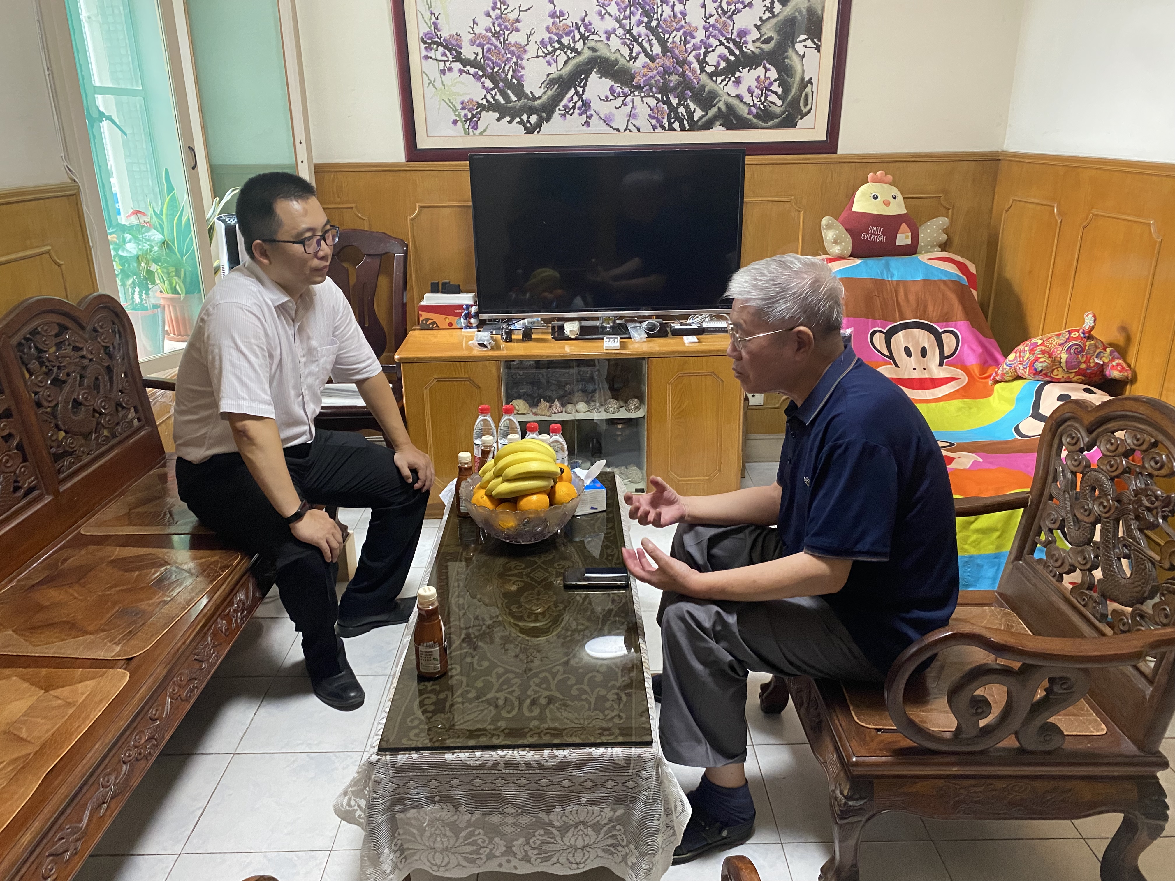 走访慰问中,院领导们为老前辈送上鲜花和慰问卡,并与前辈们亲切交谈,详细介绍了学院当前情况,并对老前辈们表示了崇高敬意,感谢他们多年来躬耕教坛,为学院的发展建设作出的贡献。同时,详细地询问了他们的身体健康状况与业余生活情况,认真倾听了他们的心声,并叮嘱他们保重身体,安享退休生活。老前辈们对学院的慰问和关心表示衷心感谢,并祝福学院发展越来越好。