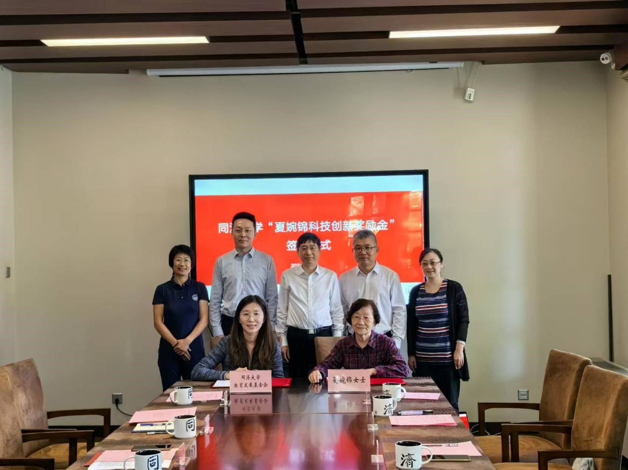 “夏婉锦科技创新奖励金”捐赠签约仪式在四平路校区举行。校党委副书记吴广明、漫蛙漫画