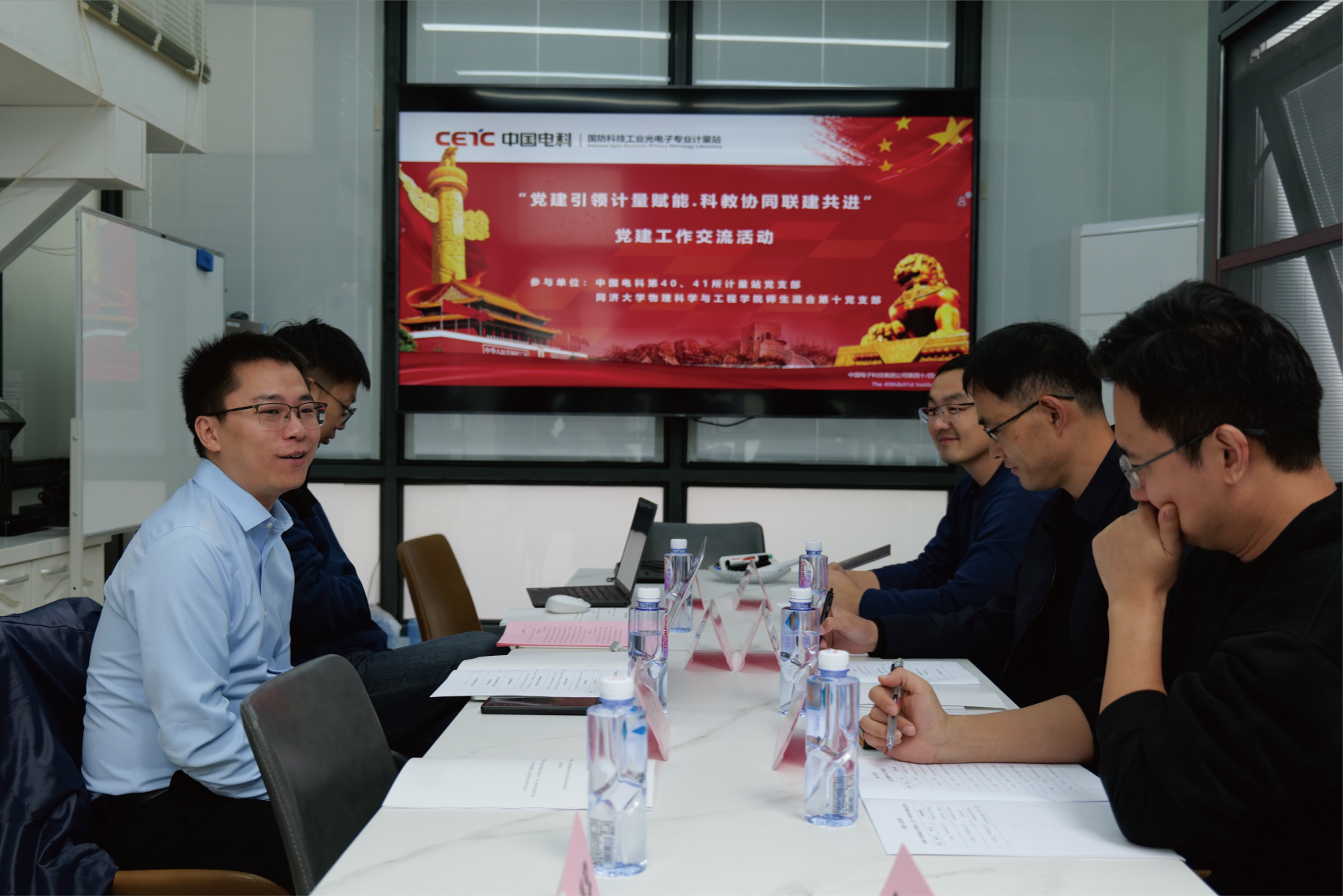 中国电科第四十、四十一所计量站党支部书记庄新港同志介绍了单位的历史沿革、资质体系与光电计量能力,并指出双方在光电器件、红外计量、镀膜工艺、高能激光应用及新型传感等方向具有高度契合。庄新港表示,本次以“党建共建”活动标志着双方合作的新起点,后续将在“党建引领中心工作”的原则下,进一步把党建与科研生产深度融合,打开务实合作的新窗口。
