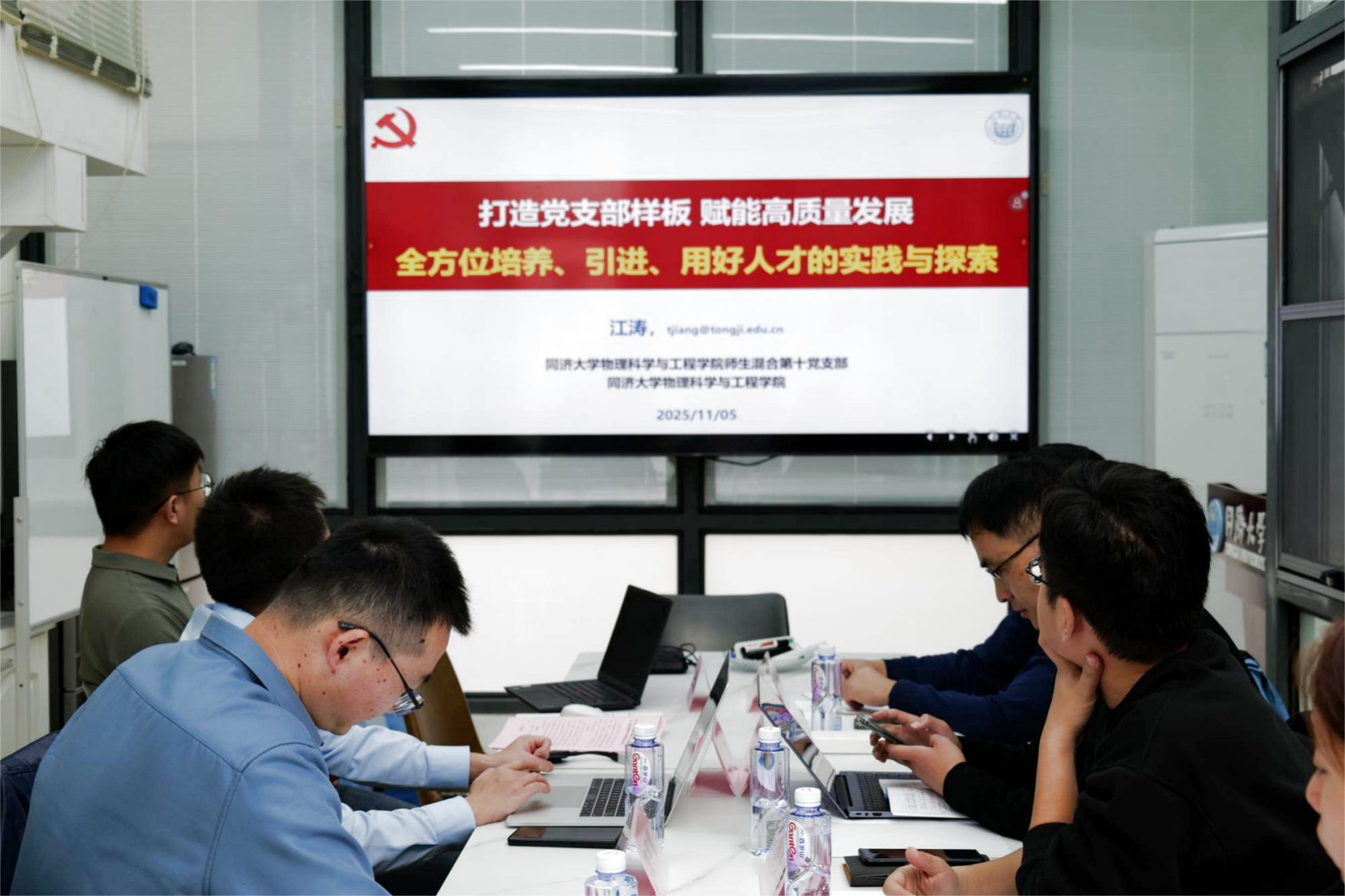 交流中,双方围绕“以支部为单元”的组织动员、学生党员与教师党员同频共振、科普与社会服务、党员导师制与新员工融入、优秀青年人才培养与引进、项目申报与学术训练等做法展开深入讨论。江涛同志提出,要通过支部平台推进教育、科技、人才三位一体,以一体化机制统筹教学、科研与育人,实践“党建工作与中心工作一体推进”的路径;同时分享了在班级学风建设、过程性评价奖学金、面向中小学科普辐射等方面的经验。